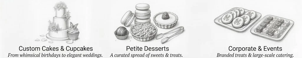 Beautifully designed cakes, cupcakes, and petite desserts custom made just for you.